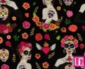 Tela Patchwork 100% Algodon Alalula con Fondo Negro. 1,45M ancho Venta 10 en 10cm